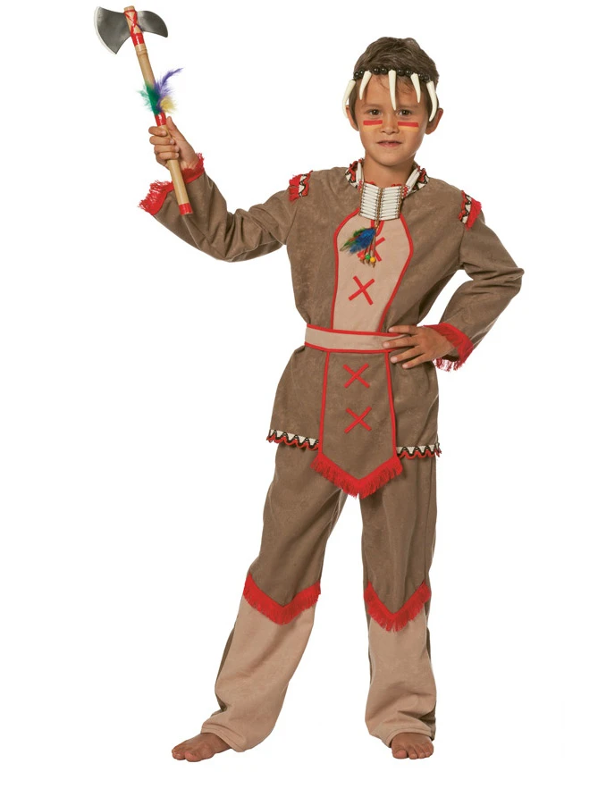 Un déguisement d’indien en suédine toute douce, imitation daim, avec un ensemble pantalon et tunique avec la ceinture intégrée, à accessoiriser avec le traditionnel bandeau à plume pour un total look indien Hiawatta.