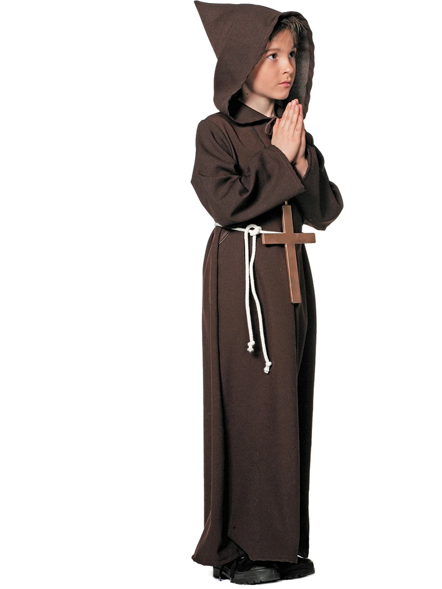 Avec ce déguisement Prêtre Chevalier pour enfant, qui se compose d’une longue tunique marron avec capuche intégrée et d’une cordelette blanche à nouer autour de la taille, votre garçon est libre de choisir son personnage selon le thème de la fête : déguisement de moine, déguisement d’assassin’s creed, déguisement de Jedi, déguisement de sorcier… Pour cela il ne reste plus qu’à le compléter avec les bons accessoires (masque, croix religieuse, épée ou sabre laser, screptre de sorcier, maquillage…).